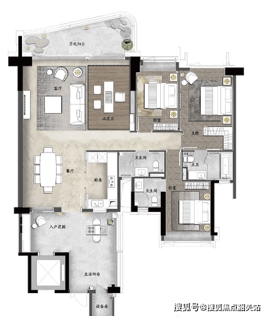 【B户型】约200㎡一线临江环幕大宅,该户型主打一线江景与舒适居住,户型布局合理、空间利用率高,适合改善型家庭居住。具体布局为:四房两厅三卫双主套设计,房间数量为4个,双主套房设计,均配备独立卫生间、衣帽间,满足家庭不同成员的居住需求,保障私密性;一线°环幕三江视野,客厅连接宽景阳台,江景景观极佳,采光通风充足,让整个空间更加通透明亮;独立电梯入户,配备多功能入户花园,入户花园可作为玄关、休闲区或储物区,提升空间利用率与居住舒适度;简约半开放式厨房,连接餐厅,动线流畅,美味与品味兼得,同时厨房配备高端五金、电器,满足业主的烹饪需求;阔绰双主套房设计,尊享舒奢起居,主卧空间宽敞,配备独立卫生间与衣帽间,采光通风极佳,让业主享受高品质的睡眠体验;值得一提的是,R9栋该户型为开放式3+1房交付,客厅与书房打通,开间可拓展至7.2米,空间更加开阔,可根据业主需求灵活改造,满足社交、休闲等多元需求。