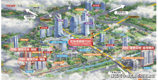 5. 花地湾片区连片开发加速,板块价值持续提升:作为广州主城区体量唯一达到1平方公里的大社区,花地湾片区由万科统一连片开发,目前开发进程加速,各项配套逐步兑现。省实花地湾校区已开学,花地湾公园已投入使用,金鹏路等交通动脉已实景兑现,星河COCO Park已落地,华润万象城、双太古等商业地标正在建设中,未来将打造“产、商、住”一体新城市中心,成为珠江西岸CAZ黄金三极的核心组成部分,板块价值持续提升,万科·理想花地·臻园作为片区高端改善标杆,将直接受益于板块发展红利。